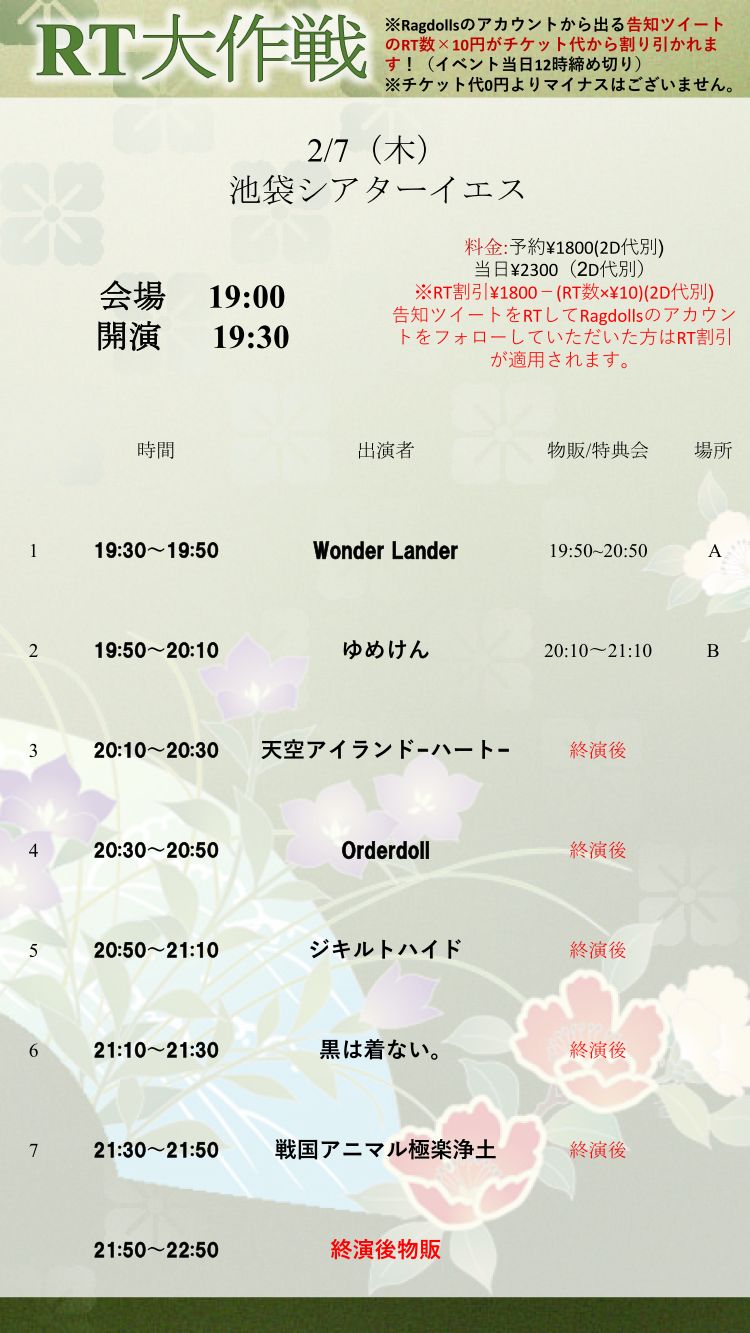 Ragdollsのアカウント発信される告知ツイートのRT数×10円がチケット代から割り引かれるお客様参加型ライブです。※チケット代0円よりマイナスはございません。