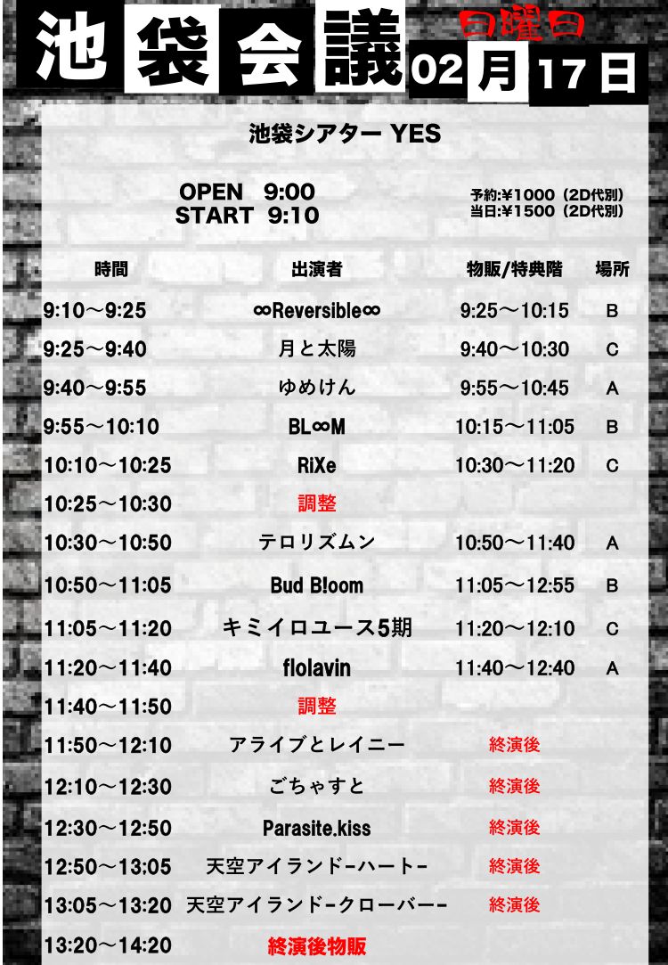 出演者 天空アイランドTeam-クローバー/天空アイランドTeam-ハート-/ごちゃすと/flolavin/RiXe/ゆめけん/Bud B!oom/月と太陽/キミイロユース5期/BL∞M/アライブとレイニー/テロリズムン/Parasite.kiss/∞Reversible∞/他