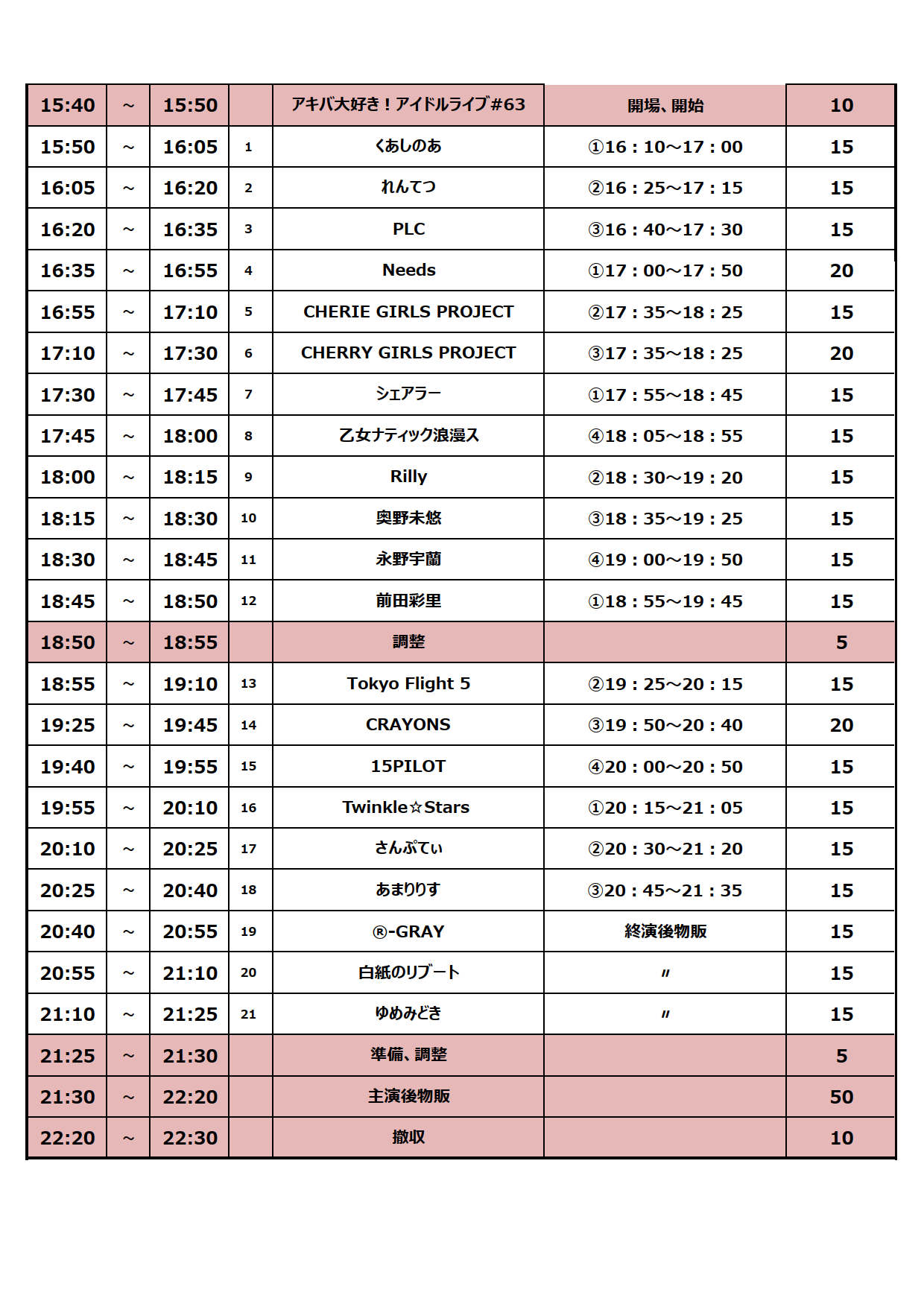 出演 CHERIE GIRLS PROJECT/CHERRY GIRLS PROJECT/Needs/PLC/乙女ナティック浪漫ス/Rilly/シェアラー/Tokyo Flight 5/くらしのあ/れんてつ/永野宇蘭/白紙のリブート/®-GRAY/CRAYONS/奥野未悠/ゆめみどき/15PILOT/さんぷてぃ/前田彩里/あまりりす/Twinkle☆Stars