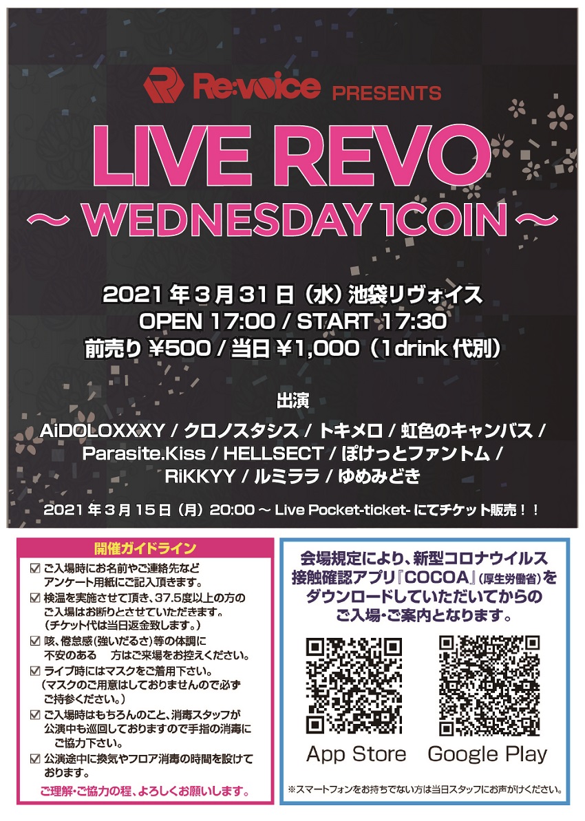 出演者 AiDOLOXXXY / クロノスタシス / トキメロ / 虹色のキャンバス / Parasite.Kiss / HELLSECT / ぽけっとファントム / RiKKYY / ルミララ / ゆめみどき