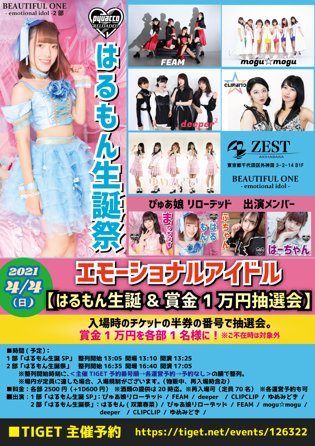 会場 秋葉原ZEST 住所 東京都千代田区外神田3丁目2−14 各部2500+D600 主催予約TIGETにて https://tiget.net/events/126322 1部 13:25~出演 2部 17:30~出演
