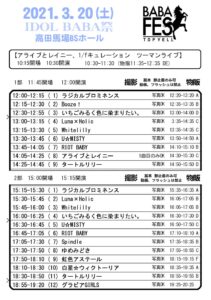 出演 いちごみるく色に染まりたい。、RIOT BABY、白星☆ウィクトーリア、Spindle、ラジカルプロミネンス、U☆MISTY、Luna×Holic、Whitelilly、ゆめみどき、虹色アステール、タートルリリー、グラビアGIRLS