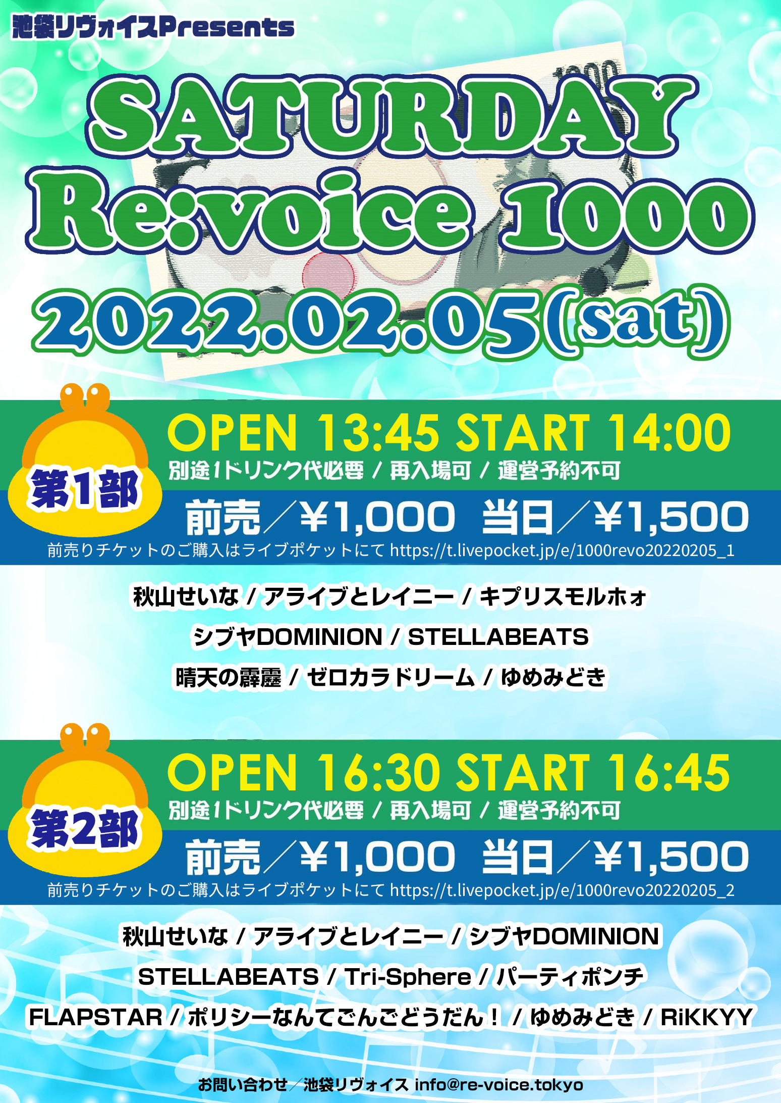 各部 前売り1000+D 当日1500+D